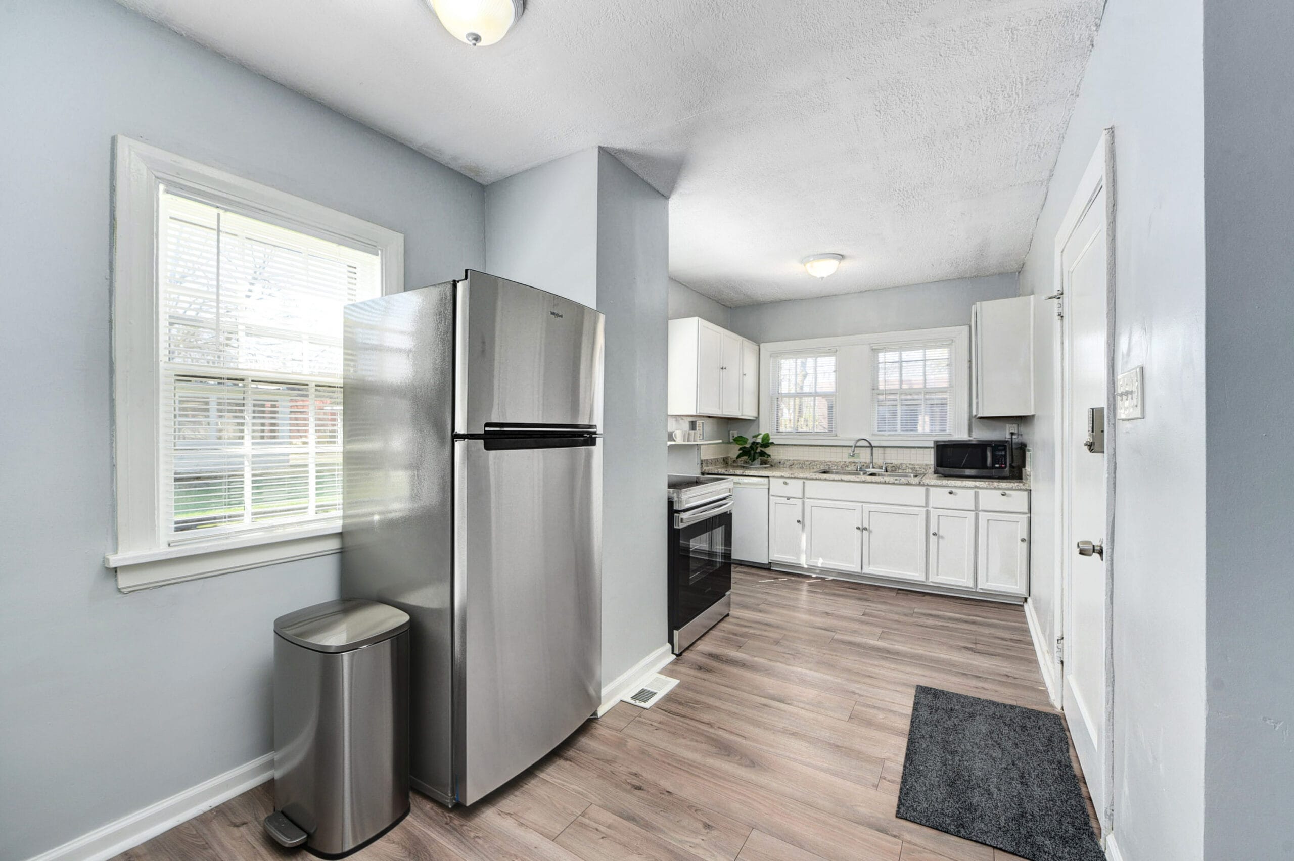 The kitchen is elegantly decorated with pleasant tones, ample cabinetry, and modern appliances. Grab some fresh ingredients and prepare delicious homemade meals should you take a break from local restaurants.