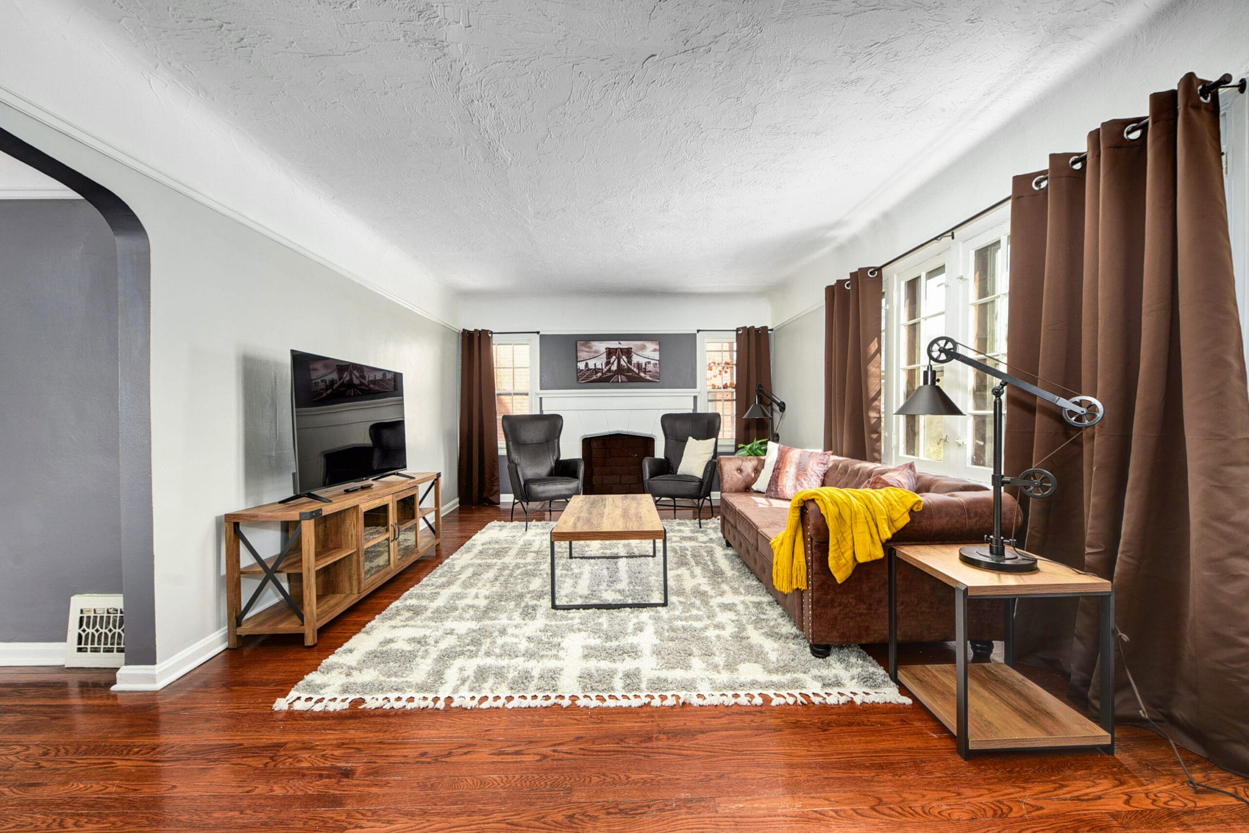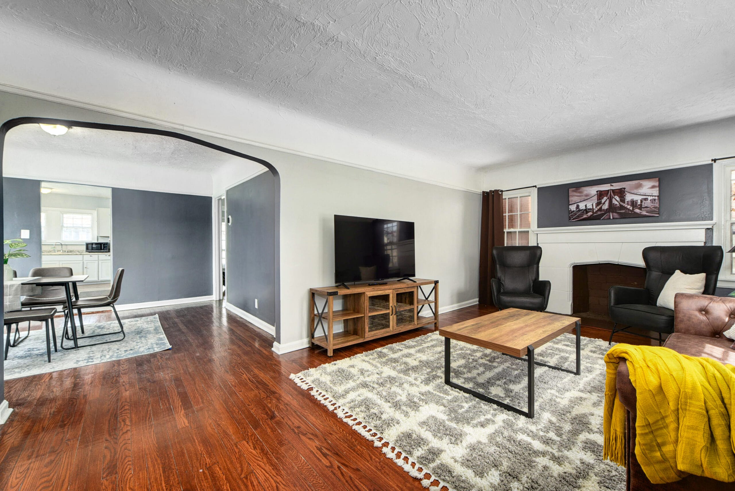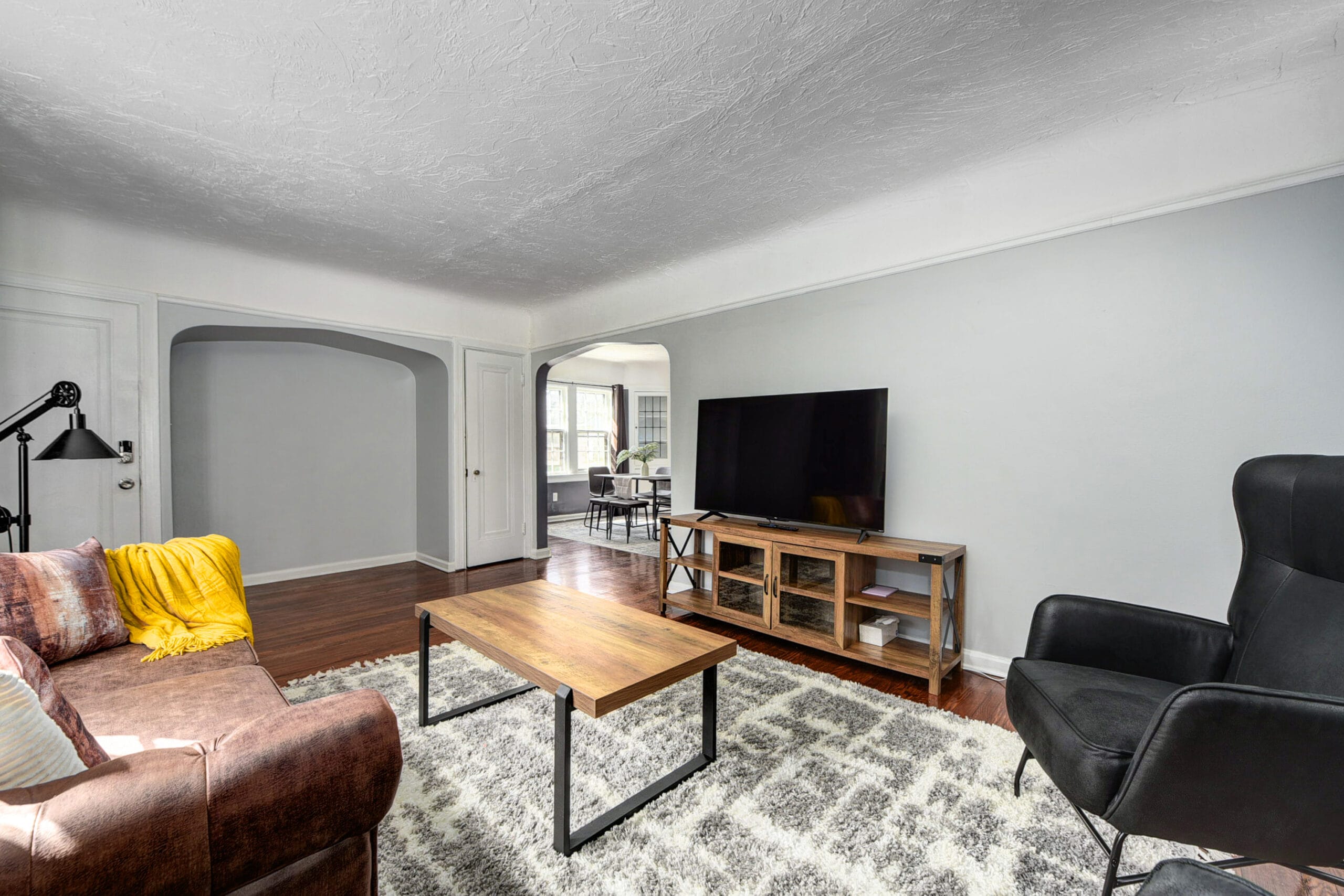 The living room allows you to unwind after a tiring work shift or a tourist visit to Cleveland by enabling you to take a break on the comfortable sofa while watching a movie or reading a good book.