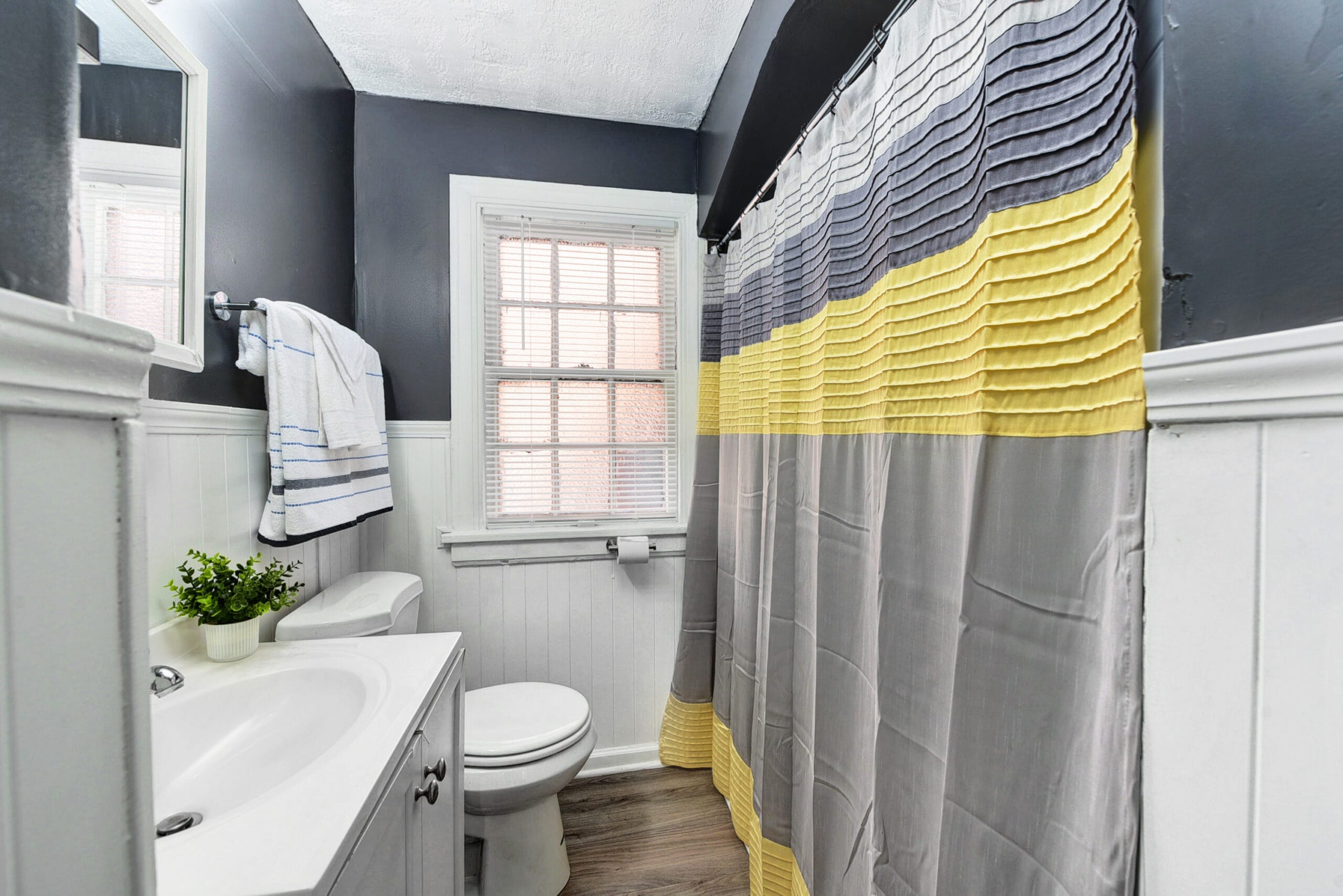The house features a full relaxing bathroom stocked with clean towels and essential toiletries, so you don’t have to worry about overpacking.